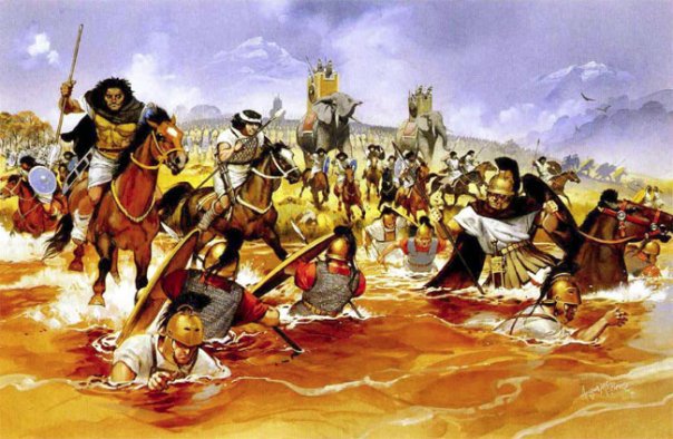 **картинка(Карфагенская африканская конница сбрасывает римлян в реку Требия (218 г. до н.э.))